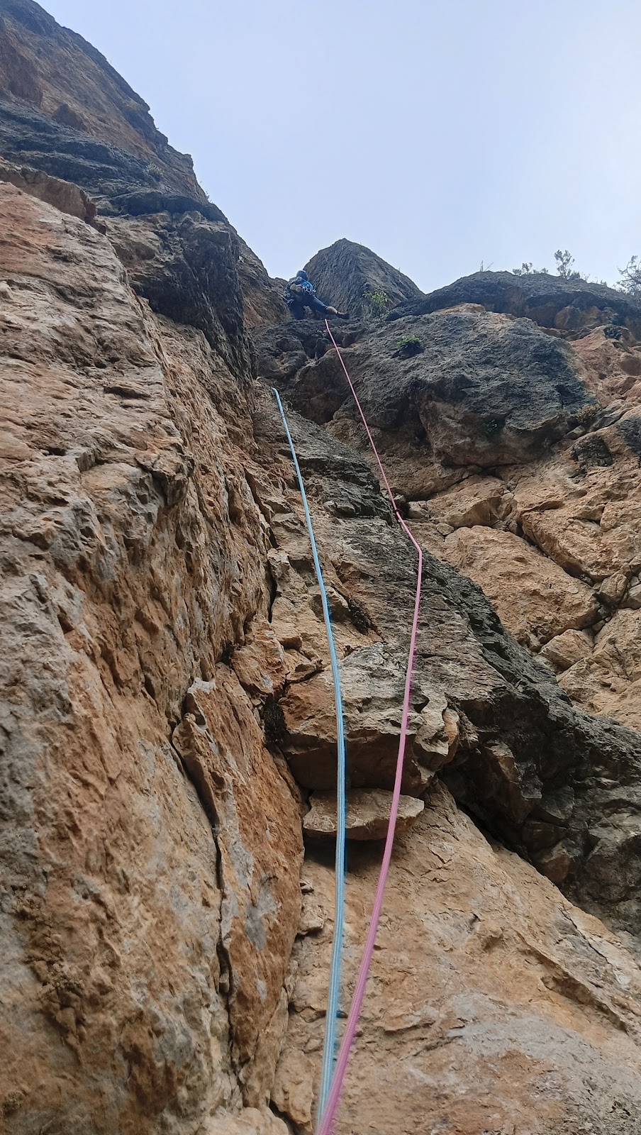 De la tercera reunión se rapela a la segunda con 30 m y de aquí al suelo.